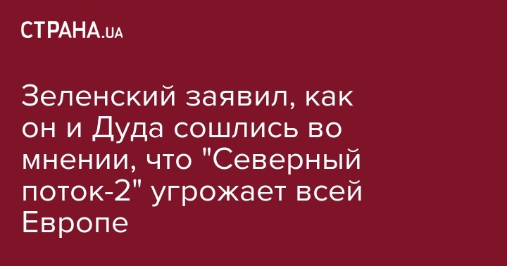 "Мы уделили внимание вопросу энергетической безопасности. И здесь мы говорим с Польшей в единый голос: "Северный поток-2" является неприемлемым и несет угрозы всей Европе", - сказал Зеленский на совместной с президентом Польши Анджеем Дудой пресс-конференции в Варшаве в субботу, 31 августа.