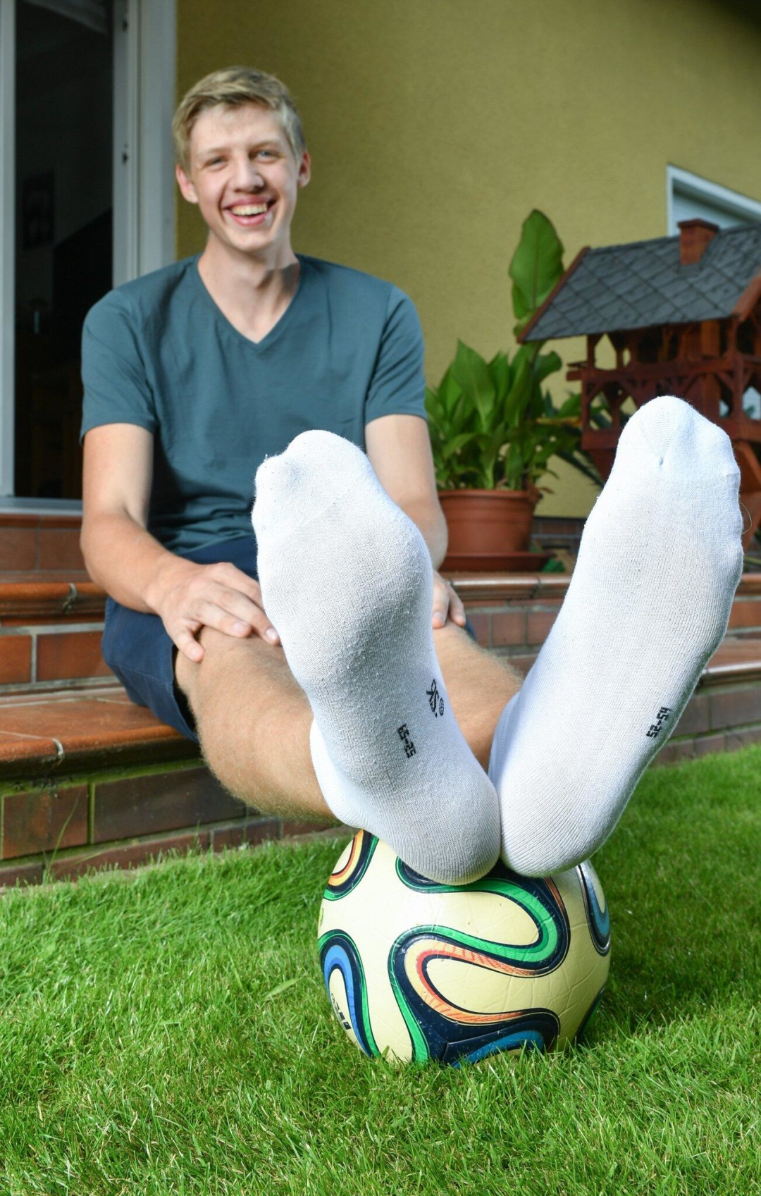 Юный немец числится как подросток мужского пола с самым большим размером ноги в мире. Его левая нога длиной 35,05 дюймов, правая - 34,98.