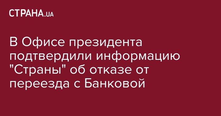 В Офисе президента подтвердили информацию "Страны" об отказе от переезда с Банковой