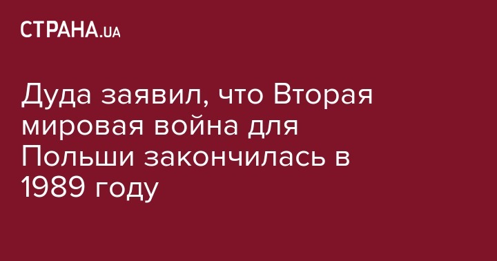 Президент Польши Анджей Дуда заявил, что Вторая мировая война для его страны закончилась лишь в 1989 году. Об этом он заявил 1 сентября на мероприятиях в честь 80-летия начала Второй мировой войны, передает Onet.pl.