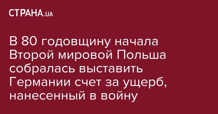 Во время памятных мероприятий по случаю 80-й годовщины нападения Германии на Польшу и начала Второй мировой войны польский президент Анджей Дуда заявил, что его страна скоро выставит счет немцам за нанесенный в войну ущерб. Об этом сообщает издание Der Spiegel.