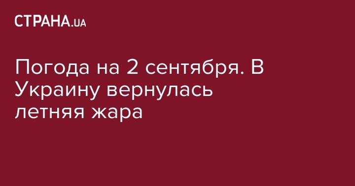 Погода на 2 сентября. В Украину вернулась летняя жара