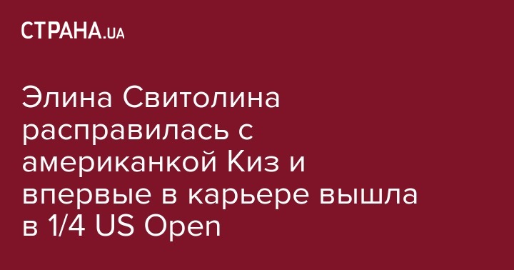 "Элина Свитолина установила новое личное достижение - впервые в карьере вышла в четвертьфинал Открытого чемпионата США. В четвертом раунде наша соотечественница обыграла американку Мэдисон Киз - 7:5, 6:4.