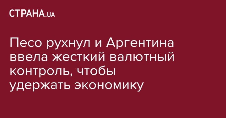 Аргентина ввела валютный контроль, пытаясь стабилизировать рынки и справиться с углубляющимся финансовым кризисом в стране. Об этом сообщает ВВС.