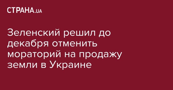 Президент Владимир Зеленский поручил Кабинету Министров разработать законопроект об отмене моратория на продажу земель сельскохозяйственного назначения и введении рынка земли до октября, а Верховной Раде - принять его до декабря. Об этом стало известно на совещании с Кабмином, представителями Верховной Рады и правоохранителями, сообщают "Украинские новости".