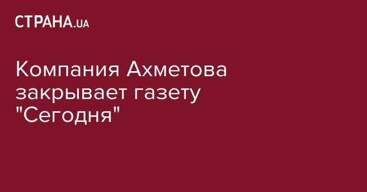 В Media Group Ukraine заявили, что принято решение приостановить издание газеты "Сегодня". 27 сентября 2019 года выйдет ее последний номер, пишет сайт холдинга.