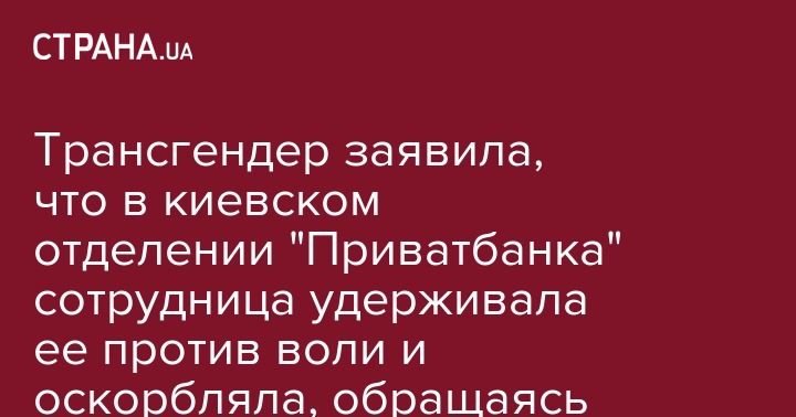 Трансгендер заявила, что в киевском отделении "Приватбанка" сотрудница удерживала ее против воли и оскорбляла, обращаясь по-мужски