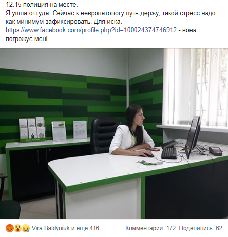 Об этом потерпевшая cама рассказала на странице в Facebook.