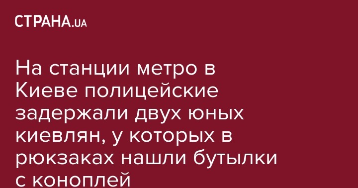 На станции метро в Киеве полицейские задержали двух юных киевлян, у которых в рюкзаках нашли бутылки с коноплей