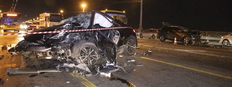 Движок вырвало "с мясом". Появились подробности лобового столкновения на мосту Патона лихача на Audi и Volkswagen
