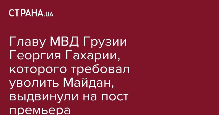Главу МВД Грузии Георгия Гахарию выдвинули на пост премьер-министра страны после вчерашнего заявления об отставке Мамуки Бахтадзе. Об этом сообщил председатель партии "Грузинская мечта" Бидзина Иванишвили, передает РИА Новости.