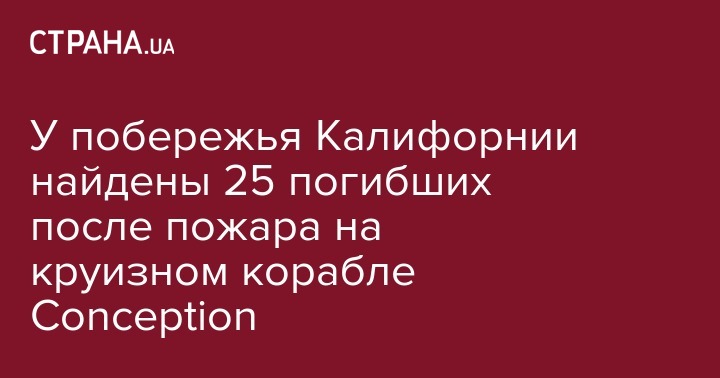 У северного побережья острова Санта-Крус в штате Калифорния, США, где 2 сентября затонуло прогулочное судно Conception, найдены тела 25 людей. Еще девять человек числятся без вести пропавшими. Об этом сообщило во вторник, 3 сентября, агентство Associated Press со ссылкой на Береговую охрану США. Его цитирует ТАСС.