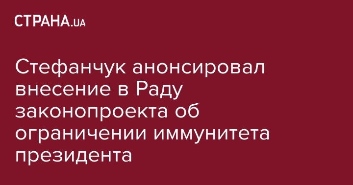 "Мы вносим на следующей неделе один из наших законов - закон об иммунитете, это процедура, которая позволяет привлекать к ответственности президента Украины", - отметил Стефанчук.