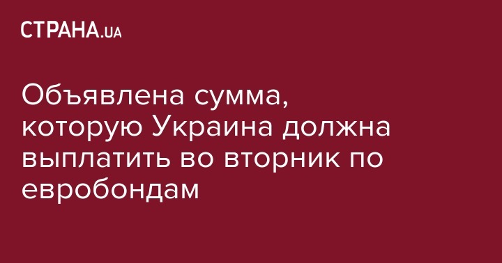 До конца вторника, 3 сентября, Министерство финансов Украины выплатит $661,34 млн по облигациям внешнего государственного займа (еврооблигациям), выпущенным в 2015 году со сроком погашения в 2019-м, и погасит $444,36 млн процентов. Об этом сообщает "Интерфакс-Украина".