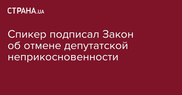 Спикер подписал Закон об отмене депутатской неприкосновенности