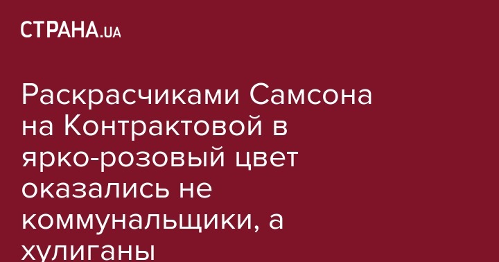 Полиция задержала троих молодых людей, которые покрасили в ярко розовый цвет скульптуру-фонтан "Самсон" на Контрактовой площади в Киеве. Об этом сообщается на сайте столичной Нацполиции.