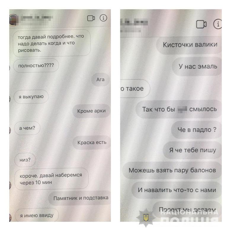 Прибывшие на место правоохранители увидели неизвестных, которые стали убегать, но одного удалось задержать. У молодого человека с собой были кисточки и емкость с веществом, похожим на краску. Он назвал полицейским фамилии соучастников.