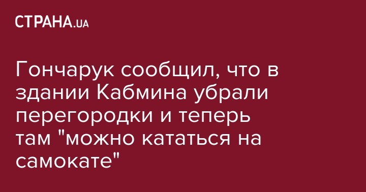 Чиновники команды нового президента Владимира Зеленского убрали перегородки между этажами в здании Кабмина на Грушевского и теперь там можно свободно кататься на самокате. Об этом сказал премьер-министр Алексей Гончарук на брифинге после заседания правительства в среду.