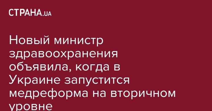 Запуск реформы системы здравоохранения на вторичном уровне состоится в апреле 2020 года. Об этом сообщила новый министр здравоохранения Украины Зоряна Скалецкая на пресс-конференции в Киеве, сообщает "Интерфакс-Украина".