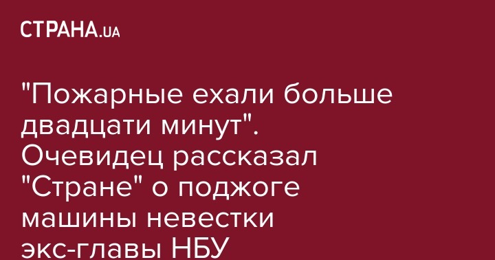 "Пожарные ехали больше двадцати минут". Очевидец рассказал "Стране" о поджоге машины невестки экс-главы НБУ