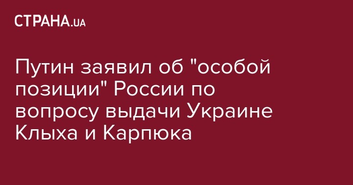 Путин заявил об "особой позиции" России по вопросу выдачи Украине Клыха и Карпюка