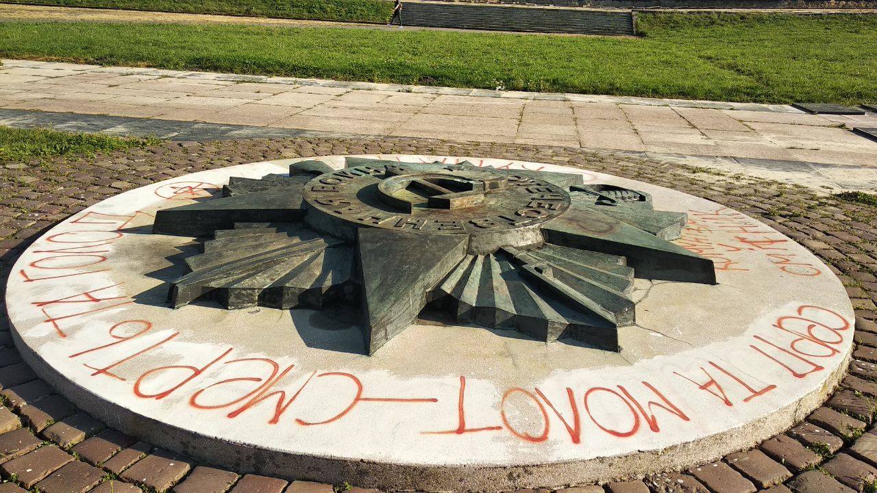 Во Львове вандалы разрисовали советскую звезду на мемориале Холм славы. Фото