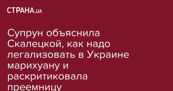 Экс-глава Минздрава Ульяна Супрун подвергла критике заявление нового министра здравоохранения Зоряны Скалецкой о необходимости разработать новый законопроект для легализации каннабиса в медицинских целях.