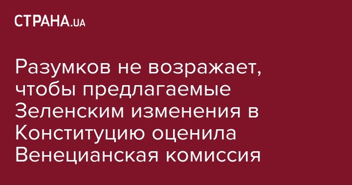 Глава Верховной Рады Дмитрий Разумков согласен направить в Венецианскую комиссию законопроекты, инициированные президентом Владимиром Зеленским, которые касаются внесения изменений в Конституцию Украины. Такое заявление Разумков сделал в программе "Право на власть" на телеканале "1+1", сообщает Укринформ.