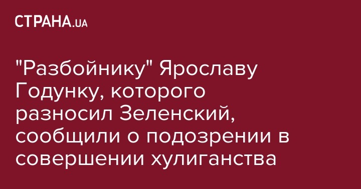 "Разбойнику" Ярославу Годунку, которого разносил Зеленский, сообщили о подозрении в совершении хулиганства