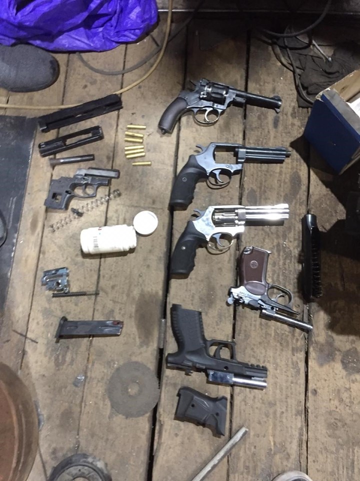 Уточняется, что в ходе расследования уголовного производства о незаконном обращении с оружием, проведен ряд обысков на территории Киевской области, во время которых обнаружено и изъяли 10 предметов похожих на пистолеты; части для пистолетов (пружины, затворы, магазины); 1400 предметов похожих на патроны калибра 7х62 и 9 мм.