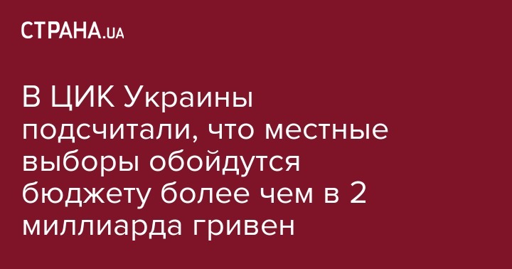 В ЦИК Украины подсчитали, что местные выборы обойдутся бюджету более чем в 2 миллиарда гривен
