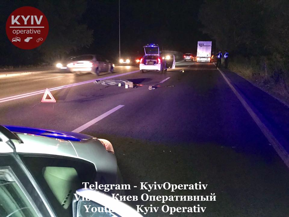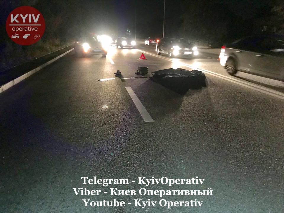 В Киеве вечером случилось смертельное ДТП, чье видео опубликовано в социальных сетях: перебегавший оживленную дорогу в неположенном месте пешеход буквально врезался в грузовик.