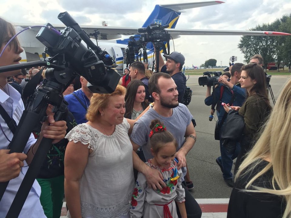 Украинцев в аэропорту встречали первые лица государства, в том числе президент Владимир Зеленский. Также бывших заключенных встречали их родные и близкие. Люди буквально со слезами на глазах кидались обнимать вернувшихся.