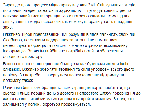 Тяжелым процесс возвращения пленных может быть и для их родных, которым при необходимости также необходимо оказать психологическую поддержку.