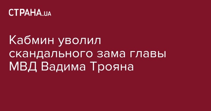 В Кабинете министров уволили Вадима Трояна, заместителя министра внутренних дел Арсена Авакова. Об этом сообщает пресс-служба правительства.