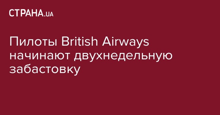 В полночь, с 8 на 9 сентября пилоты авиакомпании British Airways начнут забастовку длительностью в две недели. Сейчас отменены большинство рейсов компании на понедельник и вторник, 9 и 10 сентября. Об этом сообщает BBC.