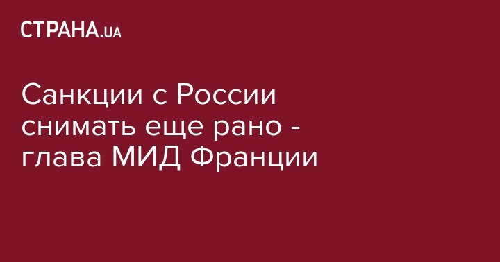 В то же время Жан-Ив Ле Дриан полагает, что на данный момент рано снимать санкции с России. Об этом он заявил перед отлетом в Москву в эфире совместной программы медиакомпаний Europe 1, CNEWS, Les Echos, как передает 112 Украина.