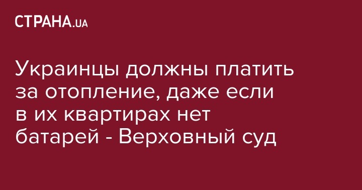 Украинцы должны оплачивать коммунальные услуги, в том числе, отопление, даже если в их квартирах нет батарей. Отключить отдельную квартиру многоквартирного дома от тепловой сети невозможно. Об этом со ссылкой на решение Кассационного хозяйственного суда пишет "Юрлига".