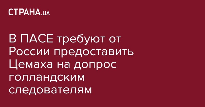 В ПАСЕ заявили, что Кремль должен обеспечить нидерландским следователям возможность допросить Владимира Цемаха, который подозревается в причастности к уничтожению лайнера рейса МН17 (был выдан России в рамках большого обмена пленными - Ред.).