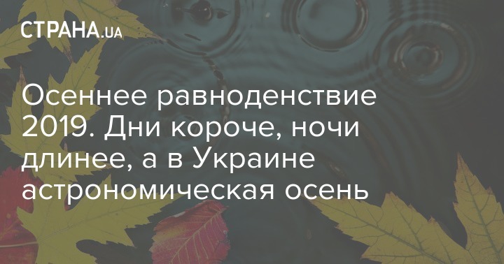 В Украине 23 сентября день осеннего равноденствия, когда день и ночь сравняются во времени и будут длиться по 12 часов. В 10:50 (по Киеву) Солнце перейдет в южное полушарие из северного. Это станет началом астрономической осени.