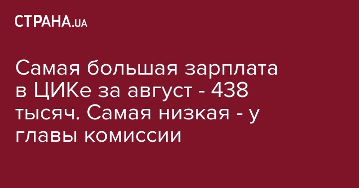 Зарплата членов Центральной избирательной комиссии Украины за август превысила выплаты за парламентские выборы и составила до 438 тысяч гривен. Об этом говорится в ответе секретариата ЦИКа на запрос Украинских новостей.