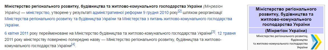 В интернет-энциклопедии "Википедия" дали созданному в результате слияния двух ведомств Министерству развития громад и территорий Украины аббревиатуру "Минразгром".