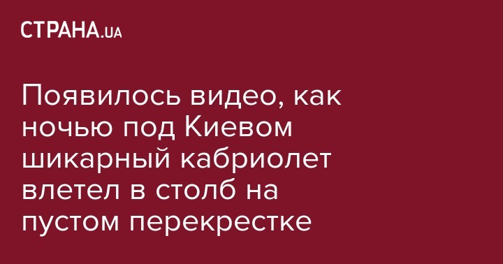 Появилось видео, как ночью под Киевом шикарный кабриолет влетел в столб на пустом перекрестке