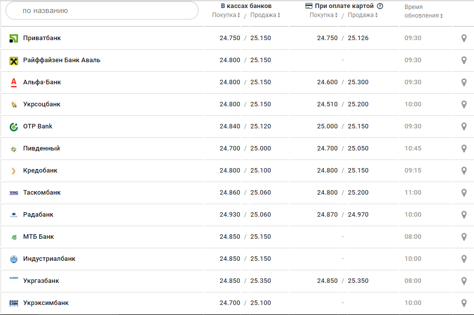 По состоянию на 17:15: покупка 24,89 грн, продажа 24,95 грн.