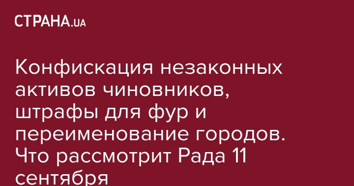 Конфискация незаконных активов чиновников, штрафы для фур и переименование городов. Что рассмотрит Рада 11 сентября