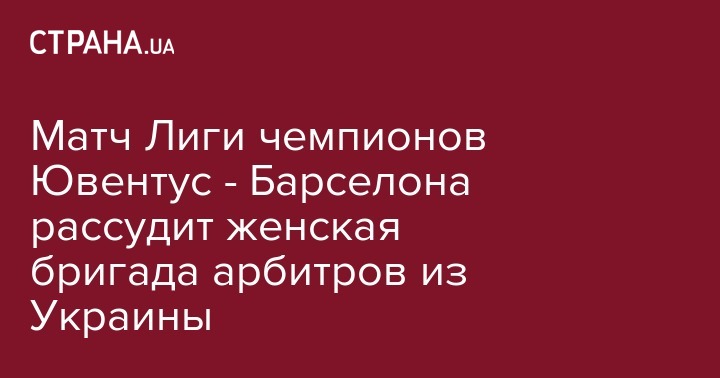 Сегодня, 11 сентября, стартуют поединки 1/16 женской Лиги чемпионов. И в УЕФА на матч между Ювентусом (Италия) и Барселоной (Испания), назначили украинскую бригаду арбитров во главе с Екатериной Монзуль. Об этом сообщает официальный сайт УАФ.