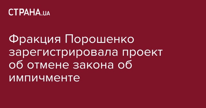 Депутаты от фракции "Европейская солидарность" зарегистрировали проект постановления об отмене результатов голосования за президентский законопроект о процедуре импичмента. Об этом говорится в проекте постановления №1012-п, информация о котором размещена на сайте парламента. Текста законопроекта пока что нет.