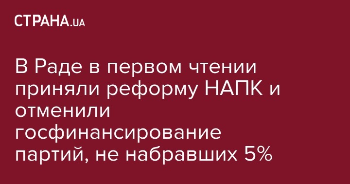 "Непонятно почему в законе о перезагрузке НАПК возникает норма фактически об отмене финансирования политических партий, которые не набрали 5%, то есть цель закона который бы дал возможность развиваться партийной системе в Украине, она, фактически нивелируется этим законом", - отметила народный депутат из фракции "Европейская солидарность" Виктория Сюмар при обсуждении законопроекта на пленарном заседании.