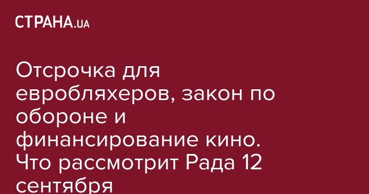 Отсрочка для евробляхеров, закон по обороне и финансирование кино. Что рассмотрит Рада 12 сентября