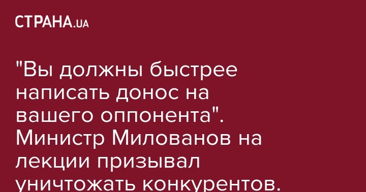 "Вы должны быстрее написать донос на вашего оппонента". Министр Милованов на лекции призывал уничтожать конкурентов. Видео